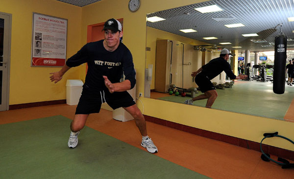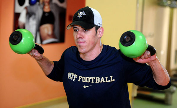 Some pictures of Evgeni Malkin's offseason workouts surfaced today and it appears that he is a Pitt football fan.