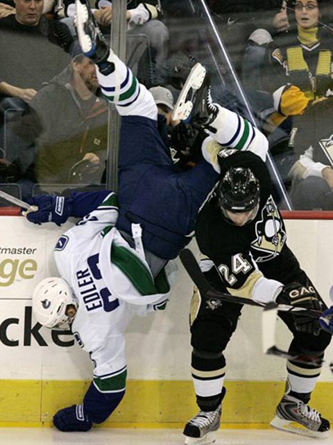 The momentum swung back and fourth throughout this game with the Canucks being able to capitalize on it more and take a 2-0 goal advantage before Ziggy put one behind Curtis Sanford early in the third. The Pens seemed to dominate the third period and looked as if the might send this one into OT until the puck was turned over with the empty net with about 12 seconds remaining. Here are the game highlights.