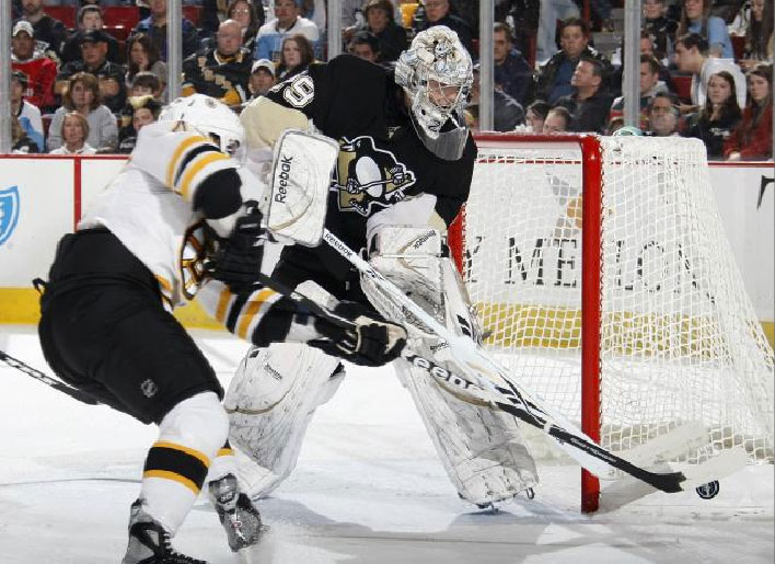 The game started out looking like the Penguins were back on track and ready to take it to the Eastern Conference leader. Pens scored that ever important first goal in the first period to go into the first intermission with a 1-0 goal lead on the Bruins. Both teams moved the puck pretty well generating scoring chances against two of the top goalies in the east.