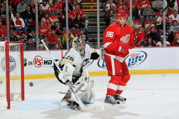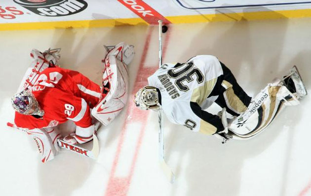 Here's one of Sabu and former Pens goalie Conklin warming up to ride the bench.