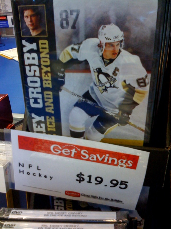 So Crosby's DVD came out today and apparently Giant Eagle doesn't know that Sid plays for the NHL and not the NFL. I found this over at TPB and thought I would share this with everyone.